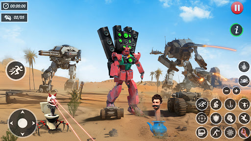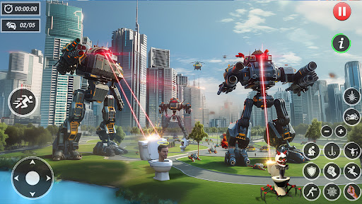 Immerse yourself in a thrilling robot shooting toilet monsters game where epic war unfold. This toilet monsters offline game transports you to a future dominated by towering, mechanized warriors locked in a relentless toilet monsters war. As a seasoned, battle-hardened robot, you are the last hope for survival against a relentless onslaught of smaller, less experienced enemies. Engage in intense toilet monsters shooting action as you confront wave after wave of hostile forces. This toilet offline game challenges you to master your combat skills, upgrade your weaponry, and outsmart your opponents in every robot war encounter. Each victory brings you closer to becoming the ultimate champion of this cutthroat toilet monsters shooting game. In this toilet game you can transform in car and flying robot. Prepare for a thrilling toilet monsters shooting experience as you navigate through diverse battlegrounds and face increasingly formidable foes. This toilet monsters offline game demands strategic thinking and lightning-fast reflexes to prevail in the brutal world of toilet monsters warfare. Hone your skills, upgrade your arsenal, and rise to the championship of this addictive toilet monsters shooting game. Unleash devastating firepower and tactical maneuvers to annihilate your enemies in this action-packed toilet monsters shooting game. Every battle is a test of your might and determination. Prove your worth as a true warrior and lead your faction to victory in this epic toilet monsters war. Experience the thrill of combat, the satisfaction of triumph, and the adrenaline rush of survival in this mustplay toilet monsters offline game. Become the ultimate toilet monsters combatant in this immersive robot shooting game. Engage in fierce battles, outsmart your opponents, and claim your place as the dominant force in this high-stakes toilet monsters war game. With each victory, you’ll ascend to new heights of power and prestige. Are you ready to embrace the challenge and become a legend in the realm of monster games? This toilet offline game offers endless hours of excitement and replayability. As you progress through the ranks, you’ll unlock new weapons, abilities, and customization options, allowing you to create a truly unique and formidable robot. Immerse yourself in the gritty world of robot warfare and experience the thrill of combat like never before. Transforming Robot Monster Game Features: • Unique flying toilet monster transforming ability • Adjustable controls of extreme flying toilet rope game • Customizable flying jet robot car transforming game garage • Speedy toilet monster car robot and racing in flying robot games • Modern jet robot game with multiple skills for fighting