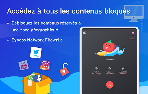 Free VPN Tomato est un VPN 100 % gratuit à la fois rapide, illimité, stable et utile. Il masque et modifie votre adresse IP, chiffre votre trafic, transforme les réseaux Wi-Fi publics en réseaux privés, contourne la censure et élimine les restrictions géographiques. Vous pourrez ainsi accéder aux contenus de votre choix et débloquer des sites, applications, jeux et flux vidéo restreints du monde entier de manière sécurisée et anonyme. ► Principales caractéristiques du VPN Navigation privée : Avec ce VPN, nul besoin de recourir à la navigation privée. Il suffit de l\activer pour chiffrer entièrement votre trafic Internet. Vos activités en ligne seront complètement anonymes. Sécurité en Wi-Fi : Votre trafic en ligne étant chiffré grâce à un VPN, vous serez totalement protégé des risques liés aux réseaux Wi-Fi publics, quel que soit le hotspot concerné. Dissimulateur d’emplacement : Le VPN masque votre adresse IP afin que votre emplacement soit dissimulé. Vous pouvez ainsi contourner les restrictions géographiques et accéder à n’importe quel contenu, n’importe où. ► Installez Free VPN Tomato dès maintenant : Facile, gratuit et illimité Free VPN Tomato est facile à utiliser (un clic suffit à se connecter), est gratuit à vie, offre une vitesse illimitée, n’applique pas de restriction de durée et ne demande pas de carte de crédit ou d’autres autorisations. Des serveurs dans plus de 60 emplacements Accédez à des serveurs dans plus de 60 pays, notamment : États-Unis, Brésil, Allemagne, Inde, Indonésie, Italie, Russie, Mexique, Corée du Sud, Royaume-Uni et Japon, etc. Débloquez des sites, applications, jeux et flux vidéo dans le monde entier Avec Free VPN Tomato, vous pouvez débloquer n’importe quels site, application ou jeu. Contournez la censure gouvernementale et les restrictions géographiques pour accéder à Facebook, Twitter, YouTube, Snapchat, PUBG, Free Fire, Twitch ou tout autre site Internet bloqué, où que vous soyez ! Regardez la télévision, des films et des évènements sportifs en direct de n\importe quel pays, peu importe votre emplacement. Connexion anonyme et protection de la vie privée Lorsque vous utilisez un VPN, votre adresse IP et votre emplacement sont dissimulés : vos activités ne peuvent plus être suivies sur Internet. Aucun identifiant n’est conservé et il n’existe aucune fuite de DNS. Free VPN Tomato protège votre vie privée. Sécurisez votre appareil Free VPN Tomato sécurise la connexion de votre appareil à des hotspots Wi-Fi publics ou des réseaux de données cellulaires. Vos mots de passe et données personnelles sont sécurisés, et vous êtes protégé contre les attaques des hackers. Surfez à haut débit, de manière anonyme Free VPN Tomato est rapide ! Notre VPN détecte votre emplacement automatiquement et vous connecte au serveur le plus proche et le plus rapide : votre connexion sera bien plus rapide qu\avec les autres VPN. Sécurisation des hotspots Wi-Fi Les hotspots Wi-Fi publics sont très appréciés des hackers, qui cherchent à récupérer vos informations personnelles pour usurper votre identité ! Free VPN Tomato chiffre le trafic sur votre réseau et protège ainsi votre hotspot Wi-Fi. Paramétrage des applications Vous pouvez choisir quelles applications peuvent utiliser le VPN et lesquelles doivent passer par votre réseau classique. ► Assistance N’oubliez pas de nous donner et de parler de nous si vous appréciez notre solution ! Vous avez des questions ? Écrivez-nous à vpntomato.dev@gmail.com.