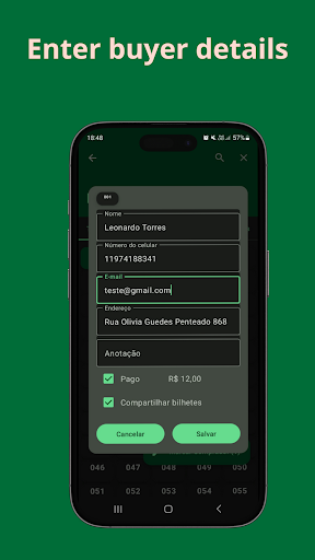 Utilisez l\application « Fast and Easy Raffle » pour créer et gérer vos tombolas simplement et facilement comme suit : 1) Créez des tirages au sort avec 50 numéros, 100 numéros, 200 numéros, 1 000 numéros, 10 000 numéros et jusqu\à 200 000 numéros en saisissant les données, le nom du tirage au sort, la date du tirage (facultatif), le nombre total et le prix et saisissez jusqu\à 10 prix. être dessiné; 2) Réservez l\acheteur en fournissant vos coordonnées (nom, email, adresse) et s\il a déjà été payé ; 3) Partager le billet ou le billet de tombola avec l\acheteur ; 4) Lors de la numérotation nous avons un champ de note, utilisez ce champ dans la numérotation et il est alors possible de le récupérer via un filtre uniquement pour les numéros qui contiennent des notes. 5) Cliquez sur le numéro marqué et vous pourrez afficher les données de l\acheteur ; 6) Il est possible de filtrer les numéros gratuits, vendus, payants et non payants en plus des numéros avec annotations ; 7) Recherche par numéro, nom, email, adresse ou note ; 8) Mettre à jour les données du tirage au sort à l\aide de la fonctionnalité « Modifier le tirage au sort » ; 9) Excluez le tirage au sort si nécessaire ; 10) Lancez le tirage directement dans l\application. Attention. Pour l\instant, nous ne sauvegardons pas les données du tirage au sort, si vous désinstallez l\application ou supprimez les données, la récupération ne sera pas possible ; Nous ne contrôlons pas les paiements, nous n\effectuons pas d\encaissements ; L\application fonctionne hors ligne, seul le propriétaire du tirage au sort peut voir les numéros ;