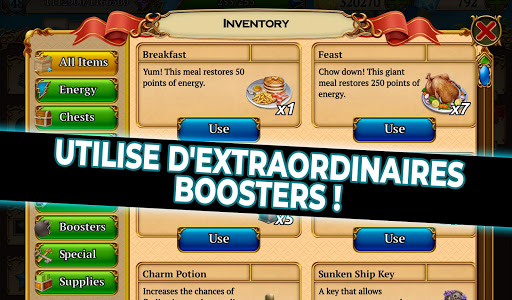 Déplace et assortis des gemmes à mesure que tu voyages à travers le monde pour récupérer des cartes au trésor ! La MYSTERY SOCIETY a besoin de ton aide pour explorer des ruines anciennes et y retrouver des trésors perdus ! Lance-toi dans l\aventure : Rejoins la célèbre MYSTERY SOCIETY, viens à bout de niveaux de match 3, explore des ruines anciennes à travers le globe, reconstitue des cartes au trésor, trouve leurs secrets cachés et expose toutes tes trouvailles dans ta salle des trophées personnelle ! Fais équipe avec des personnages exceptionnels, et deviens le plus grand explorateur que le monde ait jamais connu ! Treasure Match 3 est un jeu à ne pas louper ! PARCOURS LE MONDE ! Voyage à travers le globe vers des destinations qui feraient rêver n\importe qui, rassemble des indices et découvre des secrets du passé. N\oublie pas d\aller visiter les superbes sites de chaque nouvelle région que tu explores ! EXPLORE DES RUINES ANCIENNES ! Explore des ruines anciennes et des cavernes à la recherche des trésors qu\elles recèlent. La Mystery Society sillonne les coins les plus reculés de la planète afin d\assembler des puzzles et de révéler leurs secrets. RETROUVE DES CARTES AU TRÉSOR CACHÉES ! Mets la main sur des morceaux de cartes, rassemble-les, puis explore les cartes et retrouve les trésors cachés ! Résoudre des mystères n\a jamais été aussi gratifiant ! GARDE PRÉCIEUSEMENT TES TROUVAILLES DANS TA SALLE DES TROPHÉES PERSONNELLE ! Expose tes trophées les plus précieux et gagne des récompenses en te connectant et en jouant tous les jours. JOUE AVEC DES AMIS ! Échange des objets avec tes amis et affronte-les pour établir le meilleur score. Admire la salle des trophées de tes amis et exhibe fièrement la tienne ! Joue avec tes amis via Facebook et partage tes formidables aventures et tes parties de match 3. ----------AU PROGRAMME DE TREASURE MATCH 3--------- Un jeu de match 3 classique et addictif Aucune connexion internet requise pour jouer Des bonus spéciaux à obtenir et des trophées à gagner Un jeu gratuit ! Des boosters extraordinaires à utiliser Intégration de Facebook RENDS-NOUS VISITE SUR http://www.rolltower.com/ REGARDE-NOUS SUR https://www.youtube.com/channel/UC_TDHLBo9DqBdB77ps9Zt_Q VIENS \LIKER\ NOS PUBLICATIONS SUR https://www.facebook.com/tamalakigames/ SUIS-NOUS SUR https://twitter.com/hiddenobjectw DES QUESTIONS ? ÉCRIS-NOUS À support@tamalaki.com