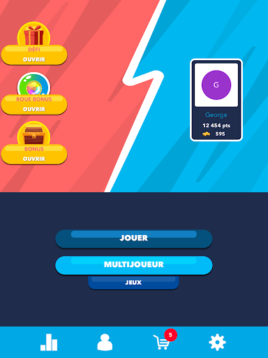 Vous êtes à la recherche d\un jeu stimulant, dynamique et amusant ? Ne cherchez plus ! MULTIPLAYER QUIZ est le jeu parfait pour défier vos amis et avoir des heures de plaisir ! MULTI-JOUEURS Défiez vos amis, votre famille ou tout autre joueur et montrez que vous êtes le meilleur ! CHAT Ne laissez rien non-dit ! Utilisez le chat pour échanger des messages avec d\autres joueurs, programmer des défis à venir ou simplement pour vous faire des amis ! DES MILLIERS DE QUESTIONS RÉGULIÈREMENT MISES À JOUR Nous avons des milliers de questions réglementées mises à jour pour vous ! Mais ce n\est pas tout : Nous ajoutons régulièrement de nouvelles questions pour rendre le jeu toujours plus dynamique et stimulant ! CLASSEMENT ET PODIUM HEBDOMADAIRE Jouez et gagnez votre place au classement tout en récoltant des médailles sur le podium hebdomadaire ! CATÉGORIES Testez vos connaissances générales ou jouez dans votre catégorie préférée : géographie, divertissement, histoire, art et littérature, science et nature, sport, musique, cinéma et football ! A vous de choisir ! MODE CLASSIQUE (HORS LIGNE) Nous savons que parfois vous voulez juste jouer seul, c\est pourquoi le jeu offre un MODE CLASSIQUE pour vous détendre et profiter du jeu sans pression des adversaires ! VIES SUPPLÉMENTAIRES Nous savons aussi que vous êtes les meilleurs, mais parfois vous avez besoin d\un peu d\aide pour aller plus loin. Le jeu vous offre donc de l\aide. MULTILINGUE Parlez-vous plusieurs langues ? Pratiquez vos compétences linguistiques, essayez de jouer dans plusieurs langues et découvrez la culture du monde ! Et maintenant, qui sera votre premier adversaire ? :D If you have any questions or want to leave us your game feedback, send us an email to info@walkme.pt