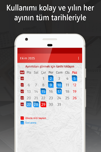 Indirin ve android telefonunuzda her resmi tatil 2025\in tadını çıkarmak ve tanımak için yeni uygulama türkiye takvimi 2025, takvim tatil uygulamamızın (türk takvimi) keyfini çıkarın. takvimi turk 2025, yılın özel tarihlerini bilmek için bir araçtır. Bu uygulama, kullanıcı dostu bir arayüze sahiptir, kullanımı kolaydır ve sunuculara bağlantı iyi optimize edilmiştir. Nerede olursanız olun, takvimi türkçe \inizin (tatil takvimi uygulaması) keyfini çıkarabilir ve hiçbir özel tarihini (ay takvimi dahil) asla kaçırabilirsiniz. 2025 takvimi ürününüz hakkındaki yorumlar veya öneriler; bunları appsamimanera@gmail.com adresine gönderebilir veya uygulama içindeki iletişim formunu kullanarak bize e-posta gönderebilirsiniz, bunları memnuniyetle çözeceğiz. Uygulamanızın doğru kullanımı için internet bağlantınızın olması gerekir. Öyleyse, ne bekliyorsunuz? Şimdi uygulamanızı indirin 2025 yeni yıl takvimi. Ve lütfen Play Store\da paylaşmayı ve yorum yapmayı unutmayın; Fikriniz bizim için çok önemli ve daha fazla Uygulama geliştirmeye devam etmemize yardımcı oluyor. Uygulamadaki görseller freepik ve Pixabay\dan indirilmiştir, ticari kullanım için bu görseller, autor\a atfedilmelidir: Freepik tarafından tasarlanmış ve Pixabay tarafından tasarlanmıştır