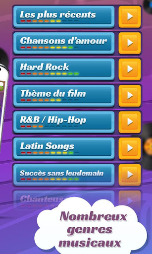 Jouez et amusez-vous avec Trouve la Chanson (Guess The Song - Music Quiz) et défiez vos amis en mode deux joueurs ! Vous aimez la musique ? Vous vous croyez incollable? Vous aimez les tests de culture? Vous pensez pouvoir deviner ce morceau? Le jeu contient une grande variété de morceaux parmi différentes catégories. Choisissez la liste de chansons qui vous plaît le plus, écoutez, devinez, et amusez-vous ! Si vous aimez les quiz, les jeux musicaux et de culture, cette appli est faite pour vous ! C’est l’une des meilleures applis ! Combien de chansons pourrez-vous nommer ? Jouez contre un ami et comparez vos scores. Marquez des points et soyez le meilleur ! Testez vos connaissances dans l’une des catégories suivantes: - Hits du moment - Hits Pop des Années 2000 - Rock des Années 2000 - Tubes des Années 60, 70, 80 et 90 - Grands Classiques Rock - Chansons d’Amour - Tubes de l’Été - Hard Rock - Rap, R&B, Hip-Hop et Funk - Hits Musique Country - One Hit Wonders - Chanteuses - Thèmes de films et séries US Les plus grands hits uniquement ! Ne passez pas votre temps à simplement écouter les musiques que vous aimez mais jouez au quiz et amusez-vous en même temps ! Téléchargez-la gratuitement et profitez de cette appli musicale.