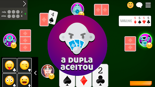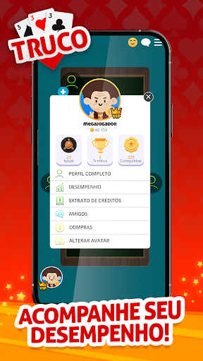 Truco Online e Offline Instale e jogue o aplicativo de baralho mais completo e mais jogado no Brasil e no mundo! Jogue grátis e sem cadastro! Tipos de Truco: ● Truco Paulista - com vira ● Truco Mineiro - manilha fixa ● Truco Espanhol (Argentino) em breve // Vai perder essa? ● Jogue online com seus amigos e familiares ● Jogo offline (sem internet) com nossa equipe de robôs ● Escolha a sala ideal para o seu nível de jogo ● Participe dos torneios e ganhe troféus exclusivos ● Modo multiplayer ou singleplayer ● Regras do Jogo para você aprender como jogar Truco + E mais + ● Jogabilidade única - passe sinal de manilha ● Conheça pessoas no chat do jogo ● Acompanhe sua classificação no ranking diário, semanal, mensal e anual ● Confira suas estatísticas de jogatina de Truco ● Navegue por telas amigáveis e de fácil jogabilidade é um aplicativo completo e gratuito do MegaJogos para amadores e profissionais do carteado! Baixe agora e divirta-se com seus amigos no celular ou tablet.
