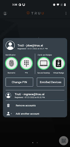 The TruU mobile app works with the TruU Identity Platform for secure frictionless access (known as TruU FluidID) to your organization\s digital and physical resources. Use the TruU app to: