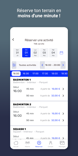 Tu veux jouer et tu cherches un joueur pour ton match ? 1- Installe l\application; 2- Réserve un créneau; 3- Crée ton match et invite un ami à le rejoindre en lui partageant le lien ; 4- Trouve un joueur de ton niveau pour compléter ton match ; C\est tout ! POURQUOI UTILISER L\APPLICATION ? RÉSERVER TON CRENEAU EN 30 SECONDES Fini la corvée de téléphone ! Avec l\application tu n\as plus qu\à accéder aux créneaux disponibles et à en choisir un. Le centre recevra alors automatiquement ta réservation. Une évolution ? Non, plutôt une révolution ! REJOINDRE UN MATCH AUTOUR DE TOI T’es chaud pour jouer au squash ? Aucun problème ! Consulte les matchs proposés par les autres joueurs. Dès que tu as trouvé le match qu\il te faut, inscris-toi ! TROUVER LE JOUEUR MANQUANT Tu as envie de jouer mais tu es seul ? Pas de panique, on a pensé à tout ! 1. Publie ta recherche de joueur et propose ton match à la communauté ; 2. On te prévient dès qu’un joueur rejoint ton match ; 3. Tu peux discuter avec le joueur inscrit (pour te renseigner sur le niveau, demander un covoiturage...) ; 4. Complète ton match et fais-toi de nouveaux partenaires ! CRÉER TA PROPRE COMMUNAUTÉ DE SPORTIFS Tu peux désormais ajouter en ami les joueurs de ton choix : - Rends-toi sur le profil du joueur ; - Envoie lui une demande d\ami ; - Invite le lors de ton prochain match ;