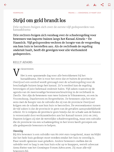Tubantia brengt je internationaal, nationaal en regionaal nieuws. We houden je op de hoogte van nationale en internationale topsport, maar hebben ook aandacht voor sport in de regio zoals amateurvoetbal. En we vertellen je wat er speelt in de cultuur- en mediawereld en in showbizzland. De Tubantia - Digitale krant app is de papieren krant, maar dan op je beeldscherm. De app bevat alle regionale edities van vandaag en een archief vol oudere kranten. - Lees de editie van je eigen regio of kies uit alle andere edities. - Bepaal zelf hoe je wilt lezen: per pagina, zoals de papieren krant, of per artikel vanuit verschillende nieuwslijsten. - Eenmaal gedownload is de krant ook zonder internetverbinding te lezen en je kunt automatisch downloaden instellen. Edities Tubantia Digitale krant bevat deze edities: - Achterhoek - Almelo - Enschede - Hengelo - Oldenzaal - Tubbergen - West Losse krant kopen of abonnement Heb je al een abonnement op Tubantia? Dan kun je gebruik maken van deze app door in te loggen met je Tubantia-profiel. Ben je je inloggegevens vergeten of weet je niet hoe je moet inloggen? Kijk bij de veelgestelde vragen op tubantia.nl/service/faq. Of bel tijdens kantooruren met onze klantenservice via telefoonnummer 088 - 0561 575. Wanneer je geen abonnee bent, kun je de digitale krant aankopen via je Google Play account. Volg Tubantia op Social Media Blijf 24/7 op de hoogte door Tubantia te volgen op Facebook, Instagram of Twitter. Facebook: https://www.facebook.com/Tubantia Instagram: https://www.instagram.com/tubantia_nl/ Twitter: https://twitter.com/tubantia Vragen of suggesties? Heb je vragen of opmerkingen over de Tubantia Digitale krant app of over Tubantia in het algemeen? Neem gerust contact met ons op door een e-mail te sturen naar appsupport@dpgmedia.nl. Tubantia is een uitgave van DPG Media BV. Onze gebruiksvoorwaarden vind je hier: https://www.dpgmedia.be/gebruiksvoorwaarden En onze privacy statement vind je hier: https://www.dpgmedia.nl/privacy