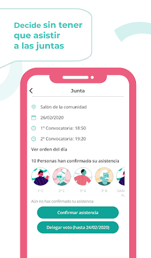 TucomunidApp es una nueva forma de relacionarte con tu comunidad de vecinos. Se conecta directamente con los sistemas del administrador de fincas de tu comunidad, para acceder a toda la información relevante y hacer todas las gestiones directamente: Reportar una incidencia, reservar un espacio común, o incluso votar los asuntos de la próxima junta. Ahora también puedes reservar tu espacio en la piscina controlando el aforo máximo. Si, parece increíble. Con TucomunidApp puedes hacer todo esto: • Reportar incidencias y conocer su evolución • Reservar espacios comunes, incluso la piscina controlando el aforo • Acceder a toda la documentación de la Comunidad • Acceder a tus recibos • Delegar el voto sobre los diferentes temas de las juntas • Proponer temas para próximas juntas • Recibir notificaciones del Administrador y del presidente • Comunicar sus solicitudes al presidente y al Administrador • Contactar con los vecinos que quieran estar accesibles • Cambio de cuenta corriente de domiciliación de sus recibos • Consultar la Agenda de la Comunidad • Invitación a inquilinos o miembros de tu unidad familiar Si eres propietario de la vivienda, el administrador de fincas de tu comunidad debe invitarte para acceder a los datos. Cuando te registres con esta invitación, ya podrás realizar todas las gestiones de tu vivienda. Si eres inquilino de la vivienda, te invitará el propietario, y accederás a todas las gestiones relacionadas con la vida en la comunidad, pero no con la gestión de recibos de la comunidad o las juntas. Todas las gestiones que se realicen son legales y, si lo requieren, cuentan con los certificados necesarios, puesto que utilizamos una plataforma 3º de confianza. Ojo, TucomunidApp es una plataforma intermediaria, y mostraremos la información que comparta el administrador de fincas de tu comunidad. Puede no utilizar todas las opciones que tiene disponibles, o hacerlo de forma imprevista. Estamos empezando y seguro que con tu ayuda podemos mejorar. Puedes escribir tus sugerencias a soporte@tucomunidapp.com. La app está disponible para móviles con versiónes superiores a Android 8. En el registro tendrás que aceptar los términos y condiciones, y se solicitarán permisos para acceder a los recursos del móvil en cada momento que se vayan a utilizar: la cámara para el perfil, la ubicación para registrar una incidencia, etc.