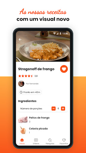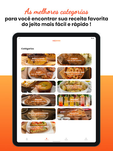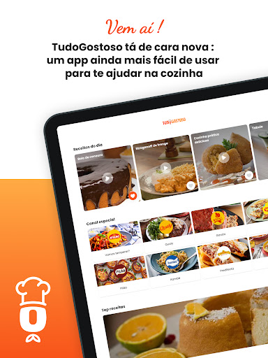 ► MAIS DE 200 MIL RECEITAS Do petisco à sobremesa, você encontra no app do TudoGostoso mais de 200.000 receitas testadas e aprovadas para todos os paladares e ocasiões. E não para por aí: aqui você tira dúvidas de cozinha, aprende truques de culinária e ganha muita inspiração de cardápio para as suas refeições e eventos. E o melhor é que é tudo muito fácil de fazer! - Bolos e tortas doces - Carnes - Aves - Peixes e frutos do mar - Saladas, molhos e acompanhamentos - Sopas - Massas - Bebidas - Doces e sobremesas - Lanches - Prato Único - Light - Rápidas ► RECEITAS FAVORITAS Sinta-se um chefe e crie seu livro de receitas marcando aquelas que você mais gosta como Favoritas. Assim, ficará muito mais fácil organizar e fazer suas tarefas na cozinha, além de ter sempre disponível (mesmo offline!) a receita daquele prato que é sucesso garantido! ► BUSCAR POR RECEITAS E INGREDIENTES Você também pode usar a ferramenta de busca para diversificar sua alimentação, encontrar aquela receita especial, saudável ou gastar pouco em uma receita barata com ingredientes que estão na sua geladeira. ► CANAIS ESPECIAIS Inspire-se nas seleções de receitas, fotos de empratamento, dicas e sugestões de produtos em nossos canais especiais e encontre ideias para o dia a dia e grandes festas como Natal e Páscoa. ► OPINIÕES E DÚVIDAS Confira os comentários de quem já testou os pratos e compartilhou suas experiências. Você também pode enviar sua opinião ou tirar dúvidas e aprender a cozinhar com nossa equipe de revisores. ► COMPARTILHE NAS REDES SOCIAIS O TudoGostoso possui a opção de envio de receita por e-mail e mensagem. Também é possível compartilhar a foto da receita que você preparou no Facebook e Instagram! ► RECEITAS PARA A CULTURA DA SUA REGIÃO Altere as receitas e o idioma sempre que desejar. Esta opção pode ser encontrada na última aba da barra inferior do app. Cada região possui suas próprias receitas e esta alteração exigirá que você entre com uma conta correspondente à região selecionada. ► É GRÁTIS (FREE APPS) Não perca tempo, instale o aplicativo de receitas e culinária mais completo do Brasil! “TudoGostoso. As receitas que todo mundo faz”