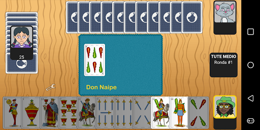 Novedades: ¡Ahora con marcadores, logros, estadísticas y recursos gráficos renovados! Producciones Don Naipe vuelve a la carga con el Tute del Medio, uno de los juegos clásicos de baraja española. El tute del medio es una popular variante del tute para tres jugadores que es muy divertida. Se juega con una baraja española de 36 cartas (quitando los doses a la clásica de 40), disputándose un número indefinido de rondas hasta que haya un perdedor. En cada ronda se reparten todas las cartas y se juega con las reglas del tute. Al final de la ronda se hace un recuento y se penaliza con un tanto al jugador que obtuvo una puntuación intermedia. La partida termina cuando un jugador llega a un número predeterminado de tantos. Aunque la regla general es que pierde la ronda el jugador con la puntuación intermedia, hay tres notables excepciones: 1) Si un jugador no hace baza, pierde 2) Si un jugador hace más de 100 puntos, pierde (con la salvedad anterior) 3) Si dos jugadores empatan, pierden (con las salvedades anteriores) Otra particularidad del tute del medio es que se canta en mesa, es decir, al coincidir el rey y el caballo del mismo palo en una baza. El primer cante se corresponderá con las cuarenta y a partir de ese momento será triunfo el palo del cante. Los siguientes cantes serán de veinte puntos. Los cantes es uno de los aspectos que añaden más interés al juego, ya que pueden hacer que se pase de puntos un jugador que va a más. Tute Medio está sólo disponible en modo individual (de momento). Como siempre, la inteligencia artificial la hemos cuidado al máximo y no podemos estar más satisfechos con el resultado. Con Tute Medio podrás: - Jugar al tute del medio de tres jugadores - Elegir entre 15 personajes - Configurar la duración del juego - Ver o no los puntos en la partida - Regular la rapidez del juego - Activar o desactivar el sonido - Ver tus estadísticas - Escalar posiciones en tres marcadores - Conseguir 17 logros diferentes Tute Medio está disponible para cualquier móvil o tableta Android (4.0 o superior). Contacta con nosotros en hola@donnaipe.com para contarnos tus impresiones, sugerencias de mejora o solución de problemas. ¡Muchísimas gracias por apoyarnos! ¿Te gusta darle al naipe? Producciones Don Naipe es especialista en juegos de cartas de baraja española. Puedes encontrar más información en nuestra web: http://donnaipe.com