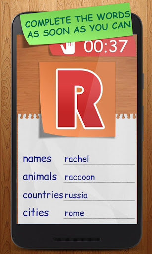 Have fun playing this new classic!, also known as TuttiFrutti. Enjoy it in its different flavors: Lan game, via WiFi o Bluetooth, or Online game. You just have to choose the one you like. Features: ★ Add to your game word categories you most like. ★ Reduce the time limit and challenge your friends. ★ Play for score, for time or for the alphabet. ★ Check your friends answers and decide if they are correct. ★ Share your progress on social networks. ★ You just have to show your friends who\s the best!