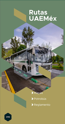 La aplicación móvil UAEMéx es un servicio digital dirigido tanto a la comunidad universitaria como al público en general, que tiene como objetivo facilitar información y servicios de nuestra universidad a través de una forma intuitiva y agradable. La aplicación móvil UAEMéx cuenta con los siguientes apartados: • Mis Estudios Mis calificaciones: podrás consultar tu trayectoria académica e indicadores de desempeño de tus estudios. Calendario escolar: Consulta de manera sencilla y rápida el calendario escolar de la UAEM. • Cultura En este apartado conocerás mensualmente la agenda cultural de la UAEM, podrás informarte de los eventos de música, teatro, exposiciones, talleres, cursos y diplomados, literatura, cine, danza, conferencias, eventos especiales y convocatorias. Museos: acércate a los museos universitarios, te compartimos sus horarios y ubicación para que los visites. • Deportes Entérate de los calendarios deportivos y eventos relevantes en este ámbito. • Rutas Haz eficientes recorridos. Calcula tus tiempos y rutas desde tu ubicación actual hacia los espacios académicos, las bibliotecas y las paradas del Potrobús. • Comunicación Universitaria Queremos que estés en contacto con la UAEM y con nuestro Rector a través de las redes sociales Facebook y Twitter, así como de sus canales de radio y televisión. • Preferencias Inicia y cierra sesión para acceder a tus servicios como alumno y obtén información para cambiar tus datos de acceso a control escolar y a tu correo.