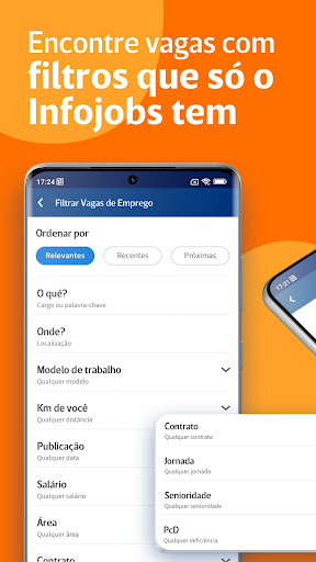 Ache seu novo emprego home office o presencial entre as mais de 107.000* vagas publicadas no App de empregos mais baixado do Brasil. Saiba os salários, benefícios, home office e como é o trabalho diário nas empresas do Brasil a través dos milhões de avaliações de funcionários que trabalharam nelas. Seja um dos primeiros em receber notificações diárias com oportunidades de emprego do seu interesse. Veja sugestões de empregos que a inteligência artificial do Infojobs selecionou especialmente para você. Agilize as comunicações com as mais de 35.000* empresas que publicam suas vagas de emprego no Infojobs. Conhecer as novidades das suas candidaturas e agendar uma entrevista de emprego nunca foi tão simples! Cadastre seu CV grátis desde o App em poucos minutos e acesse as vagas das melhores empresas de São Paulo (SP), Rio Grande do Sul (RGS), Rio de Janeiro (RJ), Paraná (PR), Minas Gerais (MG), Santa Catarina (SC) e de todo o Brasil Baixe agora o app de emprego gratuito do Infojobs e não perca nenhuma oportunidade de trabalho! Mais de 16 milhões de pessoas já utilizaram nosso app! * Média em Abril 2024