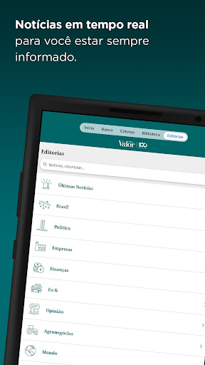 Valor Econômico – A referência em economia e negócios no Brasil Mantenha-se bem-informado com o único veículo especializado em mais de 23 setores da economia. Acompanhe os movimentos dos seus clientes e concorrentes, descubra novas tecnologias e tendências que podem impulsionar o seu negócio e transformar o mercado. A fonte essencial para quem toma decisões Com análises aprofundadas e notícias em tempo real, o Valor Econômico mantém você sempre atualizado sobre economia, finanças, negócios e investimentos. Principais recursos e vantagens - Acesso ilimitado a todo o conteúdo exclusivo, incluindo a edição digital do jornal impresso, disponível também em modo off-line. Leia onde e quando quiser. - Notícias em tempo real sobre política, economia, finanças e carreira, quando elas acontecem. - Notificações personalizadas por tema de interesse – receba as informações mais relevantes para você, na hora certa. - Cobertura empresarial e de mercado, com análises que ajudam a antecipar tendências e tomar decisões estratégicas. - Colunistas e blogs com análises dos melhores especialistas. - O Globo Digital incluso – sua assinatura também dá acesso ao conteúdo exclusivo do jornal O Globo, com reportagens aprofundadas e um time de colunistas renomados. Assinatura e condições: Oferta: R$ 29,90/mês por 3 meses. Após o período promocional, R$ 74,90/mês ou o preço vigente no período. Renovação automática: Para sua comodidade, sua assinatura será renovada automaticamente, a menos que a opção seja desativada até 24 horas antes do fim do período vigente. Você pode gerenciar essa configuração na sua conta. Disponível para smartphones e tablets compatíveis com Android (a partir da versão 7). Fale com a gente E-mail: faleconosco@infoglobo.com.br Central de atendimento: 4002-5300 – De segunda a sexta, das 7h às 14h e aos sábados, domingos e feriados, das 7h às 14h. WhatsApp ou Telegram: (21) 4002-5300. Termo de uso: https://valor.globo.com/termos-de-uso/ Política de privacidade: https://privacidade.globo.com/privacy-policy/ Valor Econômico, sua fonte confiável de informação.