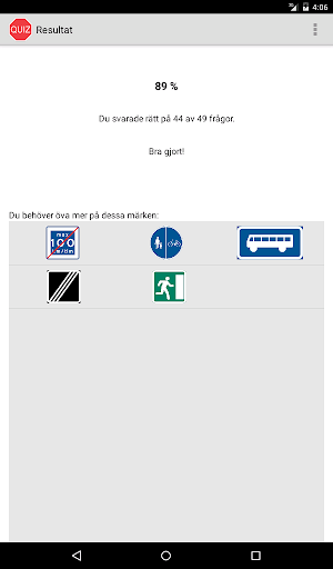 Lär dig vägmärken och teori på ett roligt sätt med Quiz och QuizRace! BÄSTA APPEN! • Perfekt övning för dig som ska ta körkort • Innehåller alla svenska vägmärken och vägmarkeringar • Mer än 1000 allmänna teorifrågor med förklaringar • Smarta, dynamiskt genererade Quiz för att öva vägmärken • Relevanta och kluriga svarsalternativ • Frågorna anpassas adaptivt efter din kunskapsnivå • Möjlighet att välj kategorier och antal frågor per quiz • Dina resultat presenteras pedagogiskt • Repetera felaktiga svar direkt i ny Quiz • Smidig sökfunktion • Bra förklaringar och bilder • Detaljerad information om alla vägmärken • Statistikfunktion där du kan följa din utveckling • Ingen reklam eller köp inuti appen • Högupplösta bilder anpassade efter din skärm • Snygga animationer • Effektiv och rolig inlärning • All fakta hämtad från Transportstyrelsen Appen innehåller även tävlingen - QuizRace • Tävla mot alla andra användare i hela landet • De 50 bästa visas på en resultatlista i appen • Android och iPhone -spelare i samma tävling Lycka till med körkortet! Vägmärken Quiz finns även för iPhone: https://itunes.apple.com/se/app/vagmarken-quiz-lite/id1118751756?l=en&mt=8