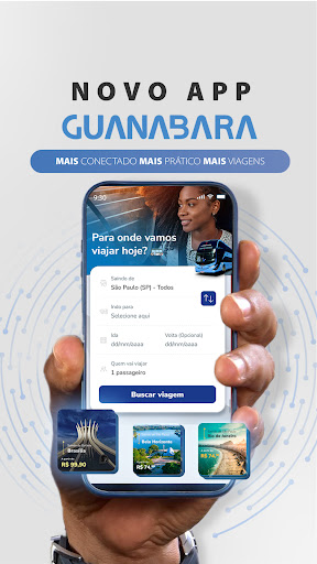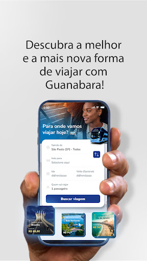 Baixe o app da Guanabara e vem! Ficou mais fácil e rápido comprar sua passagem de ônibus online e ainda garantir promoções exclusivas na palma da sua mão. Olha essas vantagens: - Parcelamento no cartão de crédito em até 12X; - Descontos e promoções exclusivas - Compra online, fácil, rápida e segura; - Passagem direto no seu celular, não precisa imprimir e nem enfrentar fila; SE VOCÊ É CLIENTE UTIL, SAMPAIO, REAL EXPRESSO OU RÁPIDO FEDERAL A Família Guanabara cresceu! Agora você compra sua passagem direto pelo aplicativo Viaje Guanabara! ATENÇÃO: os dados do seu login e senha permanecem os mesmos, acesse sua conta e garanta sua viagem direto do seu celular. Pelo aplicativo Viaje Guanabara: - Você escaneia seu e-ticket para agilizar o embarque - Tira todas as suas dúvidas sobre viajar de ônibus com a Guanabara - Suas informações ficam salvas para futuras viagens com a Guanabara Com a Guanabara você viaja de ônibus para mais de 2.000 destinos, de Norte a Sul do país. Além das melhores viagens do Brasil, a Guanabara tem o compromisso com a segurança, a inovação na tecnologia, a responsabilidade ambiental e claro, a satisfação dos viajantes do início ao fim. Com uma frota de mais de 400 ônibus, o conforto e a qualidade estão garantidos, com carregador USB, conexão wi-fi e ar-condicionado. Tudo pra você ter a melhor experiência até o seu destino. A Guanabara é considerada a melhor empresa de ônibus do país e não para de crescer. Agora as empresas Real Expresso, Rápido Federal, UTIL, Viação Sampaio e Brisa também fazer parte da família Guanabara e você encontra as passagens diretamente pelo app. Vem pro app Viaje Guanabara e embarque na sua próxima viagem!
