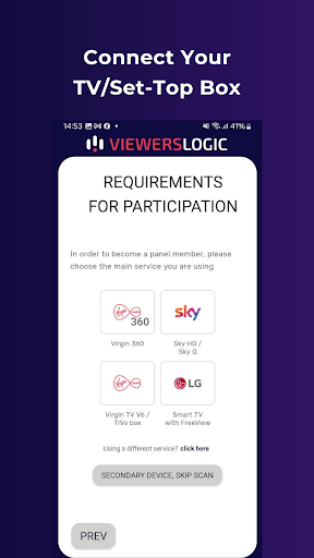 Join the ViewersLogic TV panel and earn up to £132 per year Plus a chance to win a £1000 prize – Every month one panel member will win £1000 and 10 members will win £100 ViewersLogic is running an innovative market research panel on viewers’ TV preferences and online behaviour. Our data helps advertisers to measure the effectiveness of their TV campaigns. Your participation will help shape the TV world of tomorrow! In order to be to participate in the panel, your main source for media needs to be at least one of the following: 1. A Sky set-top box; 2. A Virgin 360 or Virgin Tivo set-top box; 3. LG smart TV with embedded FreeView (Up to 3 people per household can participate when they enrol with their main phone) For your participation, you will receive daily points that can be converted into Amazon.co.uk Gift Cards*. VL collects real-time information on TV viewing and information on the online mobile activities of the users. This data enables advertisers to better target and measure the effectiveness of their TV ads. The data collected by VL is used anonymously. The company will not pass any personal user information to any 3rd party! The app collects the following information: • Which channels are viewed on the TV • Info on whether the TV is on or off • List of the Apps used on your mobile phone (name of app + time of usage) • List of Google searches done through the mobile phone • List of the web pages visited through the mobile phone. • Basic demographics data – age, gender etc. • Visited Locations The VL app DOES NOT collect the following information • Contact Lists • Content of messages in apps (e.g. WhatsApp messages, SMSs ) • Online forms • Phone numbers This app uses Accessibility services to collect the following information: • Websites you visit. • Videos you watch on VOD services. • Online purchases. • Names of pages you visited in social media. We use this data in an aggregated manner for our market research. *Amazon.co.uk is not a sponsor of this promotion. Amazon.co.uk Gift Cards (\GCs\) may be redeemed on the Amazon.co.uk website towards the purchase of eligible products listed in our online catalogue and sold by Amazon.co.uk or any other seller selling through Amazon.co.uk. GCs cannot be reloaded, resold, transferred for value, redeemed for cash or applied to any other account. Amazon.co.uk is not responsible if a GC is lost, stolen, destroyed or used without permission. See www.amazon.co.uk/gc-legal for complete terms and conditions. GCs are issued by Amazon EU S.à r.l. All Amazon , & are IP of Amazon.com, Inc. or its affiliates.