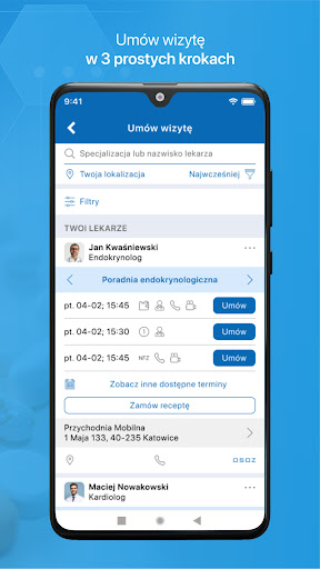 Do najważniejszych funkcjonalności należą: - wyszukiwanie lekarzy, przegląd dostępnych terminów oraz umówienie wizyty lekarskiej (ogólnej i specjalistycznej) - wyszukiwanie placówek medycznych i prezentacja dostęp do informacji jak adres, telefon, lista pracujących w przychodni lekarzy - definiowanie lekarza rodzinnego oraz dodanie lekarzy do listy najczęściej wybieranych - wyszukiwanie leków w aptekach i prezentacja najistotniejszych informacji np. nazwy, producenta, ilości i nazwy substancji aktywnej, listy tańszych zamienników oraz interakcji typu lek - lek i lek – żywność - możliwość rezerwowania leków w aptekach i ich odbioru bez kolejki - możliwość sprawdzenia cen leków - asystent leczenia, w tym dawkowania leków i kontroli interakcji leków oraz leków z żywnością - wykorzystanie i obsługa kalendarza wbudowanego w urządzenie mobilne celem zapewnienia usługi powiadomień - wyszukiwanie aptek oraz przegląd najważniejszych informacji np. adresu, telefonu, godzin otwarcia - prezentacja historii zdarzeń medycznych występujących na koncie pacjenta takich jak: rezerwacja wizyty, wystawiona i zrealizowana recepta