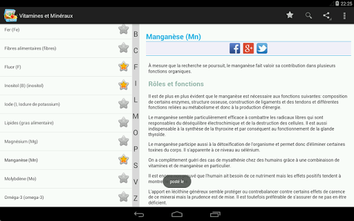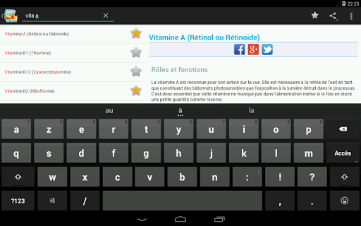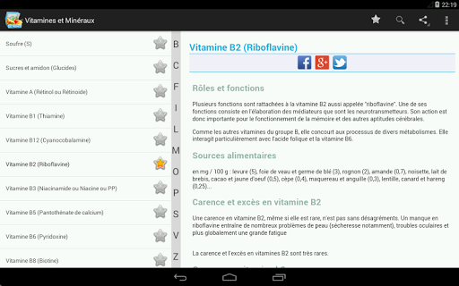 Quels rôles jouent les vitamines? Quels sont les différents types de vitamines existants? Où trouver les vitamines? Quels rôles jouent les minéraux? Les vitamines et minéraux suscitent beaucoup d’intérêt, et il est parfois difficile de s’y retrouver et de distinguer le vrai du faux en ce qui les concerne. Les caractéristiques techniques: • pratique: outil toujours disponible ne nécessitant aucune connexion internet après téléchargement; • intuitif: interface optimisée avec une navigation intuitive pour une recherche rapide et efficace; • personnalisable: favoris personnalisés pour retrouver vos termes récurrents. L\application fonctionne sans connexion Internet active, et l\information est à jour.