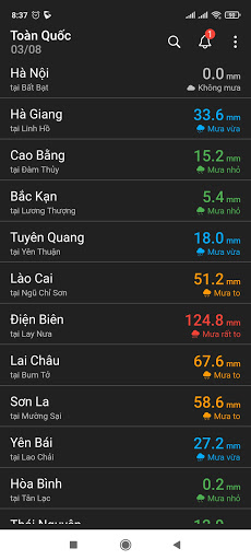 Ứng dụng Vrain xem và nhận cảnh báo lượng mưa tại các tỉnh thành trên Việt Nam Các chức năng chính - Xem lượng mưa tại các trạm đo của 1 tỉnh - Xem lượng mưa tại các trạm đo trên cả nước - Nhận cảnh báo khi lượng mưa vượt ngưỡng Mọi thông tin liên hệ, vui lòng gởi email đến Trường (thetruongkt@gmail.com) Được phát triển bởi Watec. Sử dụng với hệ thống đo mưa Vrain
