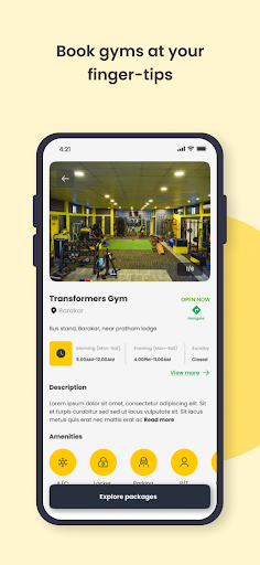 Ever searched for ‘gym near me’ or ‘fitness centers near me’? Then the all in one gym booking mobile application is for you. Vyam is the first app in West Bengal which gives you access to find gyms in Kolkata, Asansol, Raniganj and Durgapur. You can locate nearby gyms, book your slot/session whenever you want. With vyam the free gym app you can discover top-rated gyms at your fingertips and book fitness appointments. Miss workout while travelling? Can’t go to GYM everyday? Have a busy schedule? We have flexible hours for your routine. WORKOUT ANYTIME, ANYWHERE Workout at our partner fitness centers : Transformers, Top Fitness, PowerHouse, Yogam-The Fitness Club, Golds Gym, Anytime Fitness, Colosseum, Just Lift, Fitness Warriorzz, GYMSHIM, Xtreme Cross2, Monster Fitness, Carbon Fitness, Falcon Fitness, BFF, Fitnesspree and many more. With your location / GPS on you will be able to check fitness clubs near you. Also, you can call it a gym finder and check out top gym clubs near you. Making fitness affordable- from the best gym booking mobile app you can book pay-per-day & multiple days while you can compare gym prices. VYAM also allows you to book packages (1 month, 3 months, 6 months, 1 year, etc) without membership fees and admission charges and get unlimited time i.e. check-in and check-out whenever you want during GYM hours. No long-term commitment. Get the best discounts and guaranteed lowest prices on services with rewards and cashback. Get started with the VYAM app now, its free and secure: Press the ‘INSTALL’ button and install the app (download the app) > Sign-up for free > welcome to the new world of fitness. Gift a workout: The new cool feature by Vyam lets you book a gym session or gift gym memberships to anyone you like. Give workouts in the festive season or on birthdays. A cool way to show your love. How to book: Search for your favorite gym > select workout > select date > attend Gym and exercise for unlimited hours. Choose from different fitness options/categories: Cardio, Zumba, weight loss, Strength workout, pilates, diet, nutrition, workout with music, cross fit, fat loss, jim, personal training, gim, full body, gymnastics, weight lifting, boxing, sports, games, swimming pool, heavyweight, competition, burn fat, biceps, abs, shoulder, dance workout, bulk up, yoga, kalaripayattu, martial arts, etc. Why VYAM? Compare Fitness Studios/GYMs through prices, pictures, and reviews and get the best deal with amazing gifts and cashback. Making fitness available at low costs with a secure and safe environment abiding by the rules implemented by the Indian government with unisex and only girls timing. Premium partners in Kolkata: Golds Gyms, Anytime Fitness, Endorfins and Yogam. Money refund: Get money back instantly if you cancel any order, no questions asked. Claim your money back anytime. Also, refer to the refund policy on www.vyam.co.in Understand the Terms & Conditions: https://www.vyam.co.in/terms-&-conditions We respect your privacy : www.vyam.co.in/privacy-policy Pay-Later by VYAM: Another interesting feature of vyam is that you can pay later for your gym membership via vyam app. Vyam has partnered with Simpl to provide you with the taste of no-interest installments. Pay later for your memberships at 0% interest charge. We accept payment from all major cards, e-wallets, UPI-enabled apps, etc. The idea: - 1 platform for all fitness freaks and beginners too. - 1 platform for all gyms and fitness studios. - Make fitness affordable and available for every human. Any doubts, questions, queries, tension or concerns, please mail us at support@vyam.co.in VYAM like to be social: FB: https://www.facebook.com/VYAM.application/ INSTAGRAM: https://www.instagram.com/vyam.app/ TWITTER: https://twitter.com/VYAM22162610 For service providers download ‘ VYAM vendor’ app on the google play store. Find and book best gyms in Kolkata & West Bengal only on the VYAM app. Happy working out.
