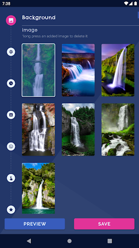 Waterfall Live Wallpaper Water 4K Wallpapers is a free wallpapers app with HD backgrounds, clock, magic touch, emoji, 3D wallpaper, animated water drops and more! Free Live Wallpapers Waterfall Live Wallpaper Water 4K Wallpapers has multiple 4K moving wallpapers with water falling and water images, waterfall backgrounds, nature landscapes HD wallpaper, multiple customize options like background changer, frames, animated water drops, magic touch, analog clock, emoji, your name and more, that work on the lock screen and they are all FREE! ️Free Android Wallpapers️ The HD live wallpapers work on most Android phones, such as Samsung Galaxy phones, and can be used as p5w backgrounds, Xiaomi live wallpapers, wallpaper for Oppo phones and more! Waterfall Live Wallpaper and the nature landscapes and water HD wallpaper works on tablets too! Customize Create your own themes by adding clocks, frames, emoji, animated water drops, magic touch to the background changer, or even make it a 3D wallpaper or 4D wallpaper (parallax wallpaper with parallax effect). It works on the lock screen too! ️Give It Parallax Effect!️ Waterfall Live Wallpaper Water 4K Wallpapers can be applied as a nature landscapes 3D wallpaper or 4D wallpaper. The parallax wallpaper has 3D depth and gives your screen and nature landscapes HD wallpapers a cool effect! Multiple Free Backgrounds You can choose one of our many HD backgrounds or you can add your own pictures! You can set up an automatic background changer with magic touch! ️How to customize️ choose a free background or add your selfie set an automatic background changer add photo frames to the Waterfall Live Wallpaper change the animated water drops on the lock screen add magic touch (color particle and sound) add moving emoji from your keyboard make the live wallpaper a 3D wallpaper or 4D wallpaper (parallax wallpaper) add your name or custom text The Waterfall Live Wallpaper app free has some of the best wallpapers for your Android phone and frequent cool new background themes! Get the best wallpapers with free phone backgrounds and enjoy this live wallpaper free! The HD wallpapers app have live wallpaper free and are one of the best mobile wallpaper apps! Customize the wallpaper HD: add a clock , your name , emoji animation , magic touch , particles and create your own wallpaper HD theme! Other Live Wallpapers: ️Autumn Flowers Live Wallpaper ️ Luxurious Theme ️Diamond wallpaper free ️Flowers Blossoms Clock Watch Wallpaper You can add this hd live wallpapers to all phones: Samsung Galaxy (even J7 prime), Xiaomi, Huawei, LG, Lenovo, Sony, Pixel, HTC, ASUS, Meizu, Motorola, Nexus and others!
