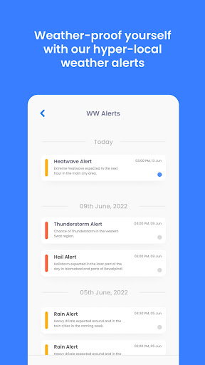 Your trusted hyper-local weather forecast app is finally here! Stay ahead of the weather with the WeatherWalay App. Pakistan’s Highly Accurate Hyper Local Weather Source, Powered by our Extensive Network of Weather Stations! Discover the WeatherWalay App – Pakistan’s ultimate weather companion delivering real-time, highly accurate and hyper local weather information across the entire nation! Live Nowcast Weather Data served from our large network of weather stations across Pakistan Live weather forecasts including hyper-local weather alerts. Weekly and Hourly forecasts available for up to 7 days. Create your own customized weather alerts using MyAlert. Watch exclusive provincial weekly weather videos brought to you by Pakistan’s iconic MET Scientist, Dr. Muhammad Hanif. Stay informed of the weather with WeatherWalay, Pakistan’s first dedicated private weather company! Get real time hyper-local weather forecasts and information from our network of deployed weather stations, serving millions of Pakistanis. Get the most accurate and up to date weather information now! Discover the WeatherWalay App – get accurate weather data with this easy-to-use app! Our network of weather stations and team of local weather experts, led by Dr. Muhammad Hanif, the nation’s highly reputed MET Scientist provide you with real-time weather information. Download and stay informed! The WeatherWalay App provides you with the most up to date and accurate weather information! Get real-time hyper local weather forecasts, live nowcast data from our network of weather stations across Pakistan, and live weather alerts. Plus, access weekly and hourly forecasts for up to 7 days and check the weather of your favorite locations. Don’t forget to watch exclusive provincial weekly weather videos brought to you by Pakistan’s iconic MET Scientists, Dr Muhammad Hanif. Create your very own personalized weather alerts with the MyAlert feature! Real-time live local forecast updates are at your fingertips wherever you are! Get local weather alerts delivered directly to your phone. Become your friends, family, and the community’s dedicated weather enthusiast with the app’s features like Share Screen, Share with Camera and Weather Reporter. Always stay informed and one step ahead of the weather with these features: Real Time, Hyper Local Current Weather Real Time, Hyper Local Weather Forecast Hourly and Weekly Forecast – up to 7 days Weather Parameters – Temperature, Rain Chance, Rainfall, Wind Speed and more. My Alert Custom Notifications/Alerts Real Time Hyper Local Weather Alerts on the go Weekly Provincial Weather Report Videos with Dr. Hanif Favorite Locations Share Screen Share with Camera Weather Reporter Download the WeatherWalay app now and find out more about what makes it extremely reliable and highly trusted. Why WeatherWalay App? The WeatherWalay App is designed to help you receive near perfect, accurate hyper local weather information. Our state-of-the-art weather stations and local expert weather forecasters and scientists ensuring you the reliability and accuracy of our data. Weather can vary significantly not only by the city but by the climatic zone in which you are located. Our team has identified and divided Pakistan into many climatic zones. Due to the highly dynamic climate, you might face the negative effects of climate change. Fortunately, our app will allow you to mitigate climate change related risks due to accurate hyper local weather information, helping you make better informed and planned decisions. For any customer care inquiries or assistance, please reach out to us at customercare@weatherwalay.com. We\re here to help!