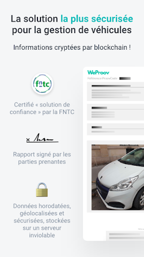 Digitalisez vos inspections de voitures, camions, motos ou engins de chantiers Obtenez des devis carrosserie en un clic! Fini le papier, place à l\efficacité. Plus de 1 000 clients professionnels nous font confiance : Loueurs, convoyeurs, logisticiens.. Plus de 30 000 utilisateurs journaliers. Testez gratuitement ! Marre des longues inspections et de vous déplacer pour des devis carrosserie ? Cette app révolutionnaire permet des inspections personnalisées, détaillées et des devis carrosserie. Téléchargez WeProov et vivez l\expérience auto transformée. Inspections pro en quelques minutes, photos HD, commentaires, et rapports clairs automatiques. Partagez-les en PDF ou un clic. Unique : demande de devis carrosserie intégrée. Détectez les dommages, envoyez infos et photos et recevez un devis compétitif. WeProov accélère tout, pour vous remettre en route rapidement. Téléchargez WeProov et simplifiez vos inspections, accélérez vos devis, créez une expérience fluide. Faites une demande de démo et rejoignez la révolution de l\inspection auto!
