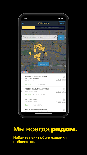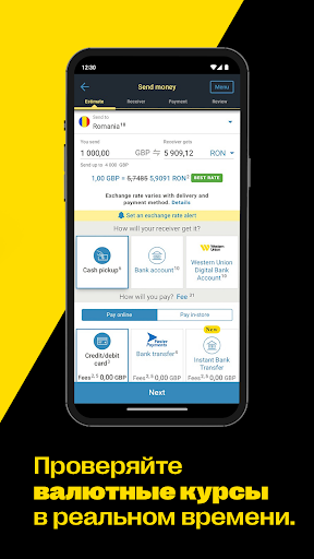 Нулевой операционный сбор* при первом онлайн-переводе Western Union на банковский счет или мобильный кошелек. Отправляйте деньги по всему миру круглосуточно. Отправляйте и отслеживайте переводы, ищите валютные курсы и пункты обслуживания поблизости прямо на ходу в приложении для денежных переводов Western Union. МЫ ОТПРАВЛЯЕМ ДЕНЬГИ БОЛЕЕ ЧЕМ В 200 СТРАН И РЕГИОНОВ Ваши друзья и родные могут получить средства на банковский счет, на мобильный кошелек** или наличными в считаные минуты*** в наших надежных пунктах обслуживания. Вам доступны такие валюты, как индийская рупия, филиппинское песо, доллар США и др. ПРОВЕРЯЙТЕ ВАЛЮТНЫЕ КУРСЫ ЛЕГКО Быстро узнавайте международные валютные курсы с помощью виджета в мобильном приложении для денежных переводов. Сравнивайте валютные курсы для разных валют в реальном времени перед отправкой денег в приложении Western Union. НАСТРОЙТЕ УВЕДОМЛЕНИЯ О ПРЕДПОЧТИТЕЛЬНОМ КУРСЕ Выберите предпочтительный валютный курс и получайте уведомления, когда он доступен. ПРОСТОЕ СКАНИРОВАНИЕ КАРТЫ Отправляйте переводы быстро, настроив платежи по карте на мобильном телефоне. Не допускайте ошибок: сканируйте кредитную или дебетовую карту камерой на устройстве. ПЛАТИТЕ УДОБНЫМ СПОСОБОМ Оплачивайте переводы с банковского счета, наличными в пункте обслуживания или кредитной****/дебетовой картой. НАЧНИТЕ В ПРИЛОЖЕНИИ, ОПЛАТИТЕ НАЛИЧНЫМИ Сэкономьте время, начав перевод в нашем приложении и оплатив его наличными в соответствующем пункте обслуживания. ОТСЛЕЖИВАЙТЕ ПЕРЕВОДЫ Легко отслеживайте переводы через приложение в любое время с помощью контрольного номера (КНДП). Получайте уведомления по электронной почте, когда деньги будут получены. БЫСТРО ОТПРАВЛЯЙТЕ ПОВТОРНЫЕ ПЕРЕВОДЫ Сохраните данные получателя в списке повторной отправки в приложении, чтобы быстро выполнять повторные переводы. ЛЕГКО ОТПРАВЛЯТЬ И ПОЛУЧАТЬ В мобильном приложении для денежных переводов Western Union можно выбрать способ получения средств. Банковский счет • Переводите деньги с помощью нашего мобильного приложения на миллиарды банковских счетов по всему миру, оставаясь на связи с самыми важными людьми. Мобильный кошелек • В зависимости от страны назначения вы можете отправить деньги из приложения на мобильный кошелек получателя.** Наличные • Благодаря сотням тысяч пунктов обслуживания мы всегда рядом. Найдите удобный пункт обслуживания, чтобы получатель получил деньги в считаные минуты.*** Передумали? • Не беда! Измените способ доставки с наличных на банковский счет (неважно, получатель вы или отправитель). Вы готовы? Присоединяйтесь к миллионам довольных клиентов, которые доверяют Western Union международные денежные переводы. Скачайте приложение Western Union и отправьте деньги сегодня. У Western Union есть отделения по всему миру и штаб-квартира в Денвере (7001 E. Belleview, Denver, CO 80237). У Вас есть вопросы о наших услугах? Обратитесь в пункт обслуживания Western Union. Воспользуйтесь поиском, чтобы найти ближайший, или позвоните по телефону +1-720-332-1000. *Western Union взимает плату за обмен валюты. Могут взиматься дополнительные сборы третьих сторон. **Доступно не для всех переводов. ***Время доставки может отличаться. ****Могут взиматься сборы по кредитной карте. Отправляйте деньги по всему миру быстро и легко с Western Union, надежным брендом с более чем 150 млн клиентов, которому уже более 170 лет. П
