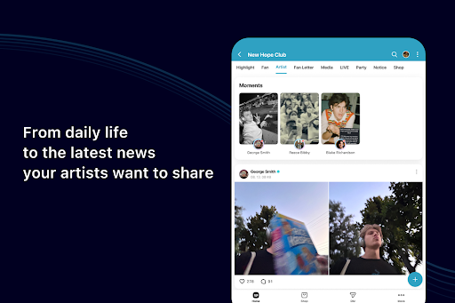 ■ A Community for Fans and Artists · Check out the daily moments of the artists and leave comments and likes. · Want to know what fans from other countries/regions are saying? Use the auto-translation feature to overcome the language barrier! Posts and comments by artists can also be auto-translated into the selected language. ■ Communicate in Real-Time on Weverse LIVE · Watch the artists stream in real-time on Weverse LIVE! · Send chat messages and hearts in real-time on your favorite artists\ streams! ■ Get Closer to Your Favorite Artists on Weverse DM · Subscribe to Weverse DM, where you can talk directly with artists! · Use Jelly, a digital currency you can purchase on Weverse, to subscribe. ■ Shop on Weverse · Head to the Shop tab to purchase official merch and albums, check your order history, and get real-time notifications more conveniently! ■ Tell Them How You Really Feel with Fan Letters · Write and decorate fan letters to send your love and support to your favorite artists on Weverse. · Unleash your creativity and try out various templates and decoration features offered by the fan letter editor. ■ Archive Your Fan Activities with Collection · Earn badges and Collectibles through your fan activities. · Complete specific missions to get badges and Collectibles. Collectibles are digital items that can range from digital images to videos. · View your badges and Collectibles at a glance for each community you joined in My Collection. ■ Track Your Community Milestones with Collection · Find out the badges you\ve earned for your community activities and the badges you can earn in Collection. · You can earn badges by completing missions. The missions and badges available for each community will be different. ■ Diverse and Exclusive Media Content · Everything from official content to Weverse-exclusive media content! · Watch a wide range of media content on Weverse with subtitles! ■ Official Membership-Only Content and Benefits · Enjoy the exclusive content and benefits only available for official membership holders! [Service Access Permission Details] * Required Access - Device and app activities: For checking app errors and improving usability - Device ID: For identifying devices * Optional Access - Camera: For writing posts, scanning images, and recording video content - Microphone/Nearby Devices: For recording video and audio content (nearby devices: Android 12 or later) - Photos/Media/Files: For writing posts and downloading media - Location: For using Weverse Queues and purchasing certain products - Notification: For receiving notifications on content, notices, and more (Android 13 or later) * You can use the service even if you do not agree to the optional access permissions. However, some features may be restricted if you do not agree. [Get Closer with Weverse] - X: @weverseofficial - Instagram: @weverseofficial - YouTube: @weverse - TikTok: @weverseofficial [Subscriptions on Weverse] ▷ Weverse offers two monthly subscription services: [BTS behind] and [TXT behind]. [BTS behind] monthly subscription: KRW 3,900 (Based on the KRW price, VAT included) [TXT behind] monthly subscription: KRW 3,900 (Based on the KRW price, VAT included) Terms of Use: https://weverse.io/policies/terms Privacy Policy: https://weverse.io/policies/privacy Inquiry: support@weverse.io Customer Service: 1544-0790 (Available only in South Korea)