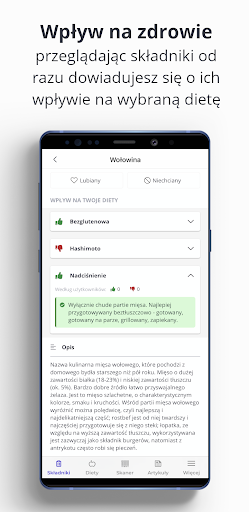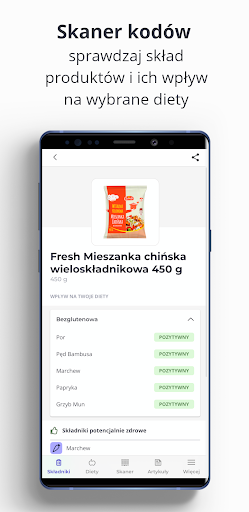 Pobierz darmową aplikację dietetyczną Wiesz Co Jesz, wybieraj diety, wyszukuj składniki żywności oraz skanuj skład produktów spożywczych, aby jeść i kupować zdrowo. Najnowsza wersja 2021 zawiera ponad 3000 autorskich opisów składników żywności, w tym wszystkich dodatków E i popularnych potraw, przygotowanych przez dietetyków oraz kilkadziesiąt tysięcy produktów spożywczych, w tym bio i eko. Pomagamy w dokonywaniu lepszych wyborów żywieniowych, zapewniając eksperckie informacje na temat skanowanego produktu. Żyjemy w czasach, w których żywność jest wysoce przetworzona lub pochodzi z różnych źródeł - nie zawsze mamy pewność, czy jest to zdrowa żywność. Teraz bez problemu rozpoznasz co dla Ciebie dobre, a co złe. Na bieżąco aktualizujemy bazę pod kątem ostatnich zaleceń dietetycznych i zmian w prawie, aby uwzględnić wszystkie składniki uznane za szkodliwe. Dzięki “Wiesz Co Jesz” nie tylko dowiesz się więcej na temat danego składnika czy produktu, ale też sprawdzisz jego zgodność ze swoją dietą i profilami żywieniowymi. Jesteś wege? Cierpisz na nadciśnienie? Musisz unikać laktozy lub doskwiera Ci alergia na gluten - celiakia? A może jesteś w ciąży? Sprawdź, jak skład danego produktu wpłynie na Twoje zdrowie i czy jest zgodny z Twoją dietą. Alergia, nietolerancja żywieniowa, dieta bogata w konkretne składniki - miej to pod kontrolą i rób zdrowe zakupy. Możesz także zdefiniować swoje własne ulubione lub niechciane składniki i łatwo wynajdować je w sprawdzonych produktach. Zdrowe jedzenie powinno być także smaczne, więc jeżeli nie cierpisz szpinaku lub masz uczulenie na truskawki, aplikacja ostrzeże Cię o ich zawartości. Najważniejsze funkcje: - baza 3000 składników z eksperckimi opisami, podzielona na 44 kategorie - baza kodów kreskowych z informacją o składzie, w tym zdrowa żywność bio i eko - szybki skaner kodów kreskowych z zapisywaniem historii wyszukań - wyszukiwanie składników żywności alfabetyczne, ręczne lub po kategoriach - dokładny opis każdego składnika - baza wszystkich E-dodatków z informacją o wpływie na zdrowie - ponad 40 diet opracowanych przez dietetyków: eliminacyjne, profilaktyczne, funkcjonalne, na popularne schorzenia i różne etapy życia - analiza zgodności składników i produktów z wybraną dietą! - newsy i blog dietetyczny Te informacje pomogą Ci podejmować świadome decyzje dotyczące tego, co jesz oraz robić zdrowe zakupy dla Ciebie i Twoich bliskich. Gotowe produkty spożywcze często zawierają zaskakująco wysokie poziomy soli, cukru, czy tłuszczów nasyconych, a informacje o wartości odżywczej na etykietach opakowań mogą być mylące. “Wiesz Co Jesz” to szybka analiza składników odżywczych i alergenów, a także zgodności konkretnych produktów z wybraną dietą. Wprowadzenie nawet niewielkich zmian w odżywianiu może zapobiec wielu problemom zdrowotnym, w tym nadciśnieniu, wysokiemu cholesterolowi, otyłości, czy cukrzycy typu 2. To z kolei może pomóc zmniejszyć częstotliwość występowania zawałów serca, udarów i niektórych typów nowotworów. Zdrowa żywność jest ważna! :) Zakupy w aplikacji: - monitoring nieograniczonej liczby diet - pakiet 100 dodatkowych skanowań - wyłączenie reklam - wszystko w jednym, czyli Pakiet Premium w odnawialnej subskrypcji Jeżeli zauważysz brak jakiegoś składnika lub chcesz zaproponować kolejną dietę, napisz do nas na dieta@wieszcojesz.health.