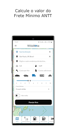 O planejador de viagem mais baixado do país VEJA O QUE ESTÃO FALANDO DO WIKIROTA UOL https://tecnologia.uol.com.br/listas/vai-pegar-estrada-veja-6-aplicativos-para-tornar-a-viagem-mais-tranquila.htm Missão Digital https://missaodigital.magazineluiza.com.br/vai-viajar-economize-na-estrada-com-estes-apps/ ZOOM https://www.zoom.com.br/celular/deumzoom/transito-carnaval-apps-fugir-folia-bloco O POVO https://www.opovo.com.br/jornal/popveiculos/2018/02/dicas-e-servicos.html Clic RBS http://atl.clicrbs.com.br/infosfera/2017/12/14/5-aplicativos-que-vao-te-ajudar-muito-na-mobilidade-urbana-veja-quais-sao/ Soft Download http://www.softdownload.com.br/calcule-custos-viagem-wikirota-android-iphone.html ShowMeTech https://www.showmetech.com.br/conheca-apps-gastos-combustivel/ Rodobens https://blog.rodobens.com.br/aplicativos-para-viagens-de-carro Com o WikiRota você saberá: - Custo da viagem (de até 35 destinos) com pedágio e combustível para Carro, - Custo da viagem (de até 35 destinos) com pedágio e combustível para Caminhonete - Custo da viagem (de até 35 destinos) com pedágio e combustível para Motocicleta - Custo da viagem (de até 35 destinos) com pedágio, combustível e Frete Minimo ANTT para Caminhão - Custo da viagem (de até 35 destinos) com pedágio e combustível para Ônibus Quando utilizar o WikiRota: - Para dividir o custo da viagem de carro com amigos - Para saber o custo da viagem com a família toda - Para saber o custo da viagem em caso de utilizar para fins comerciais - Para calcular o custo de uma excursão de van ou quando utilizar a van para frete empresarial - Para calcular o custo da viagem do seu funcionário, em caso de empresa - Para calcular o custo da transporte de caminhão e determinar o preço do frete e utilizar o cálculo do frete mínimo da ANTT de maneira automática. - Para calcular o custo da viagem de motocicleta quando quiser passear com amigos - Para calcular o custo da viagem de motocicleta do motoboy em caso de entrega em outra cidade - Para calcular o custo de uma excursão de ônibus - Para calcular sua rota ou viagem contemplando o custo por KM do seu veículo O que oferecemos: - Pedágios que estão no seu percurso, com a posição real no mapa - Distancia a ser percorrida - Tempo da sua viagem - Possibilidade de calcular a viagem de ida e volta - Valor total da sua rota - Alterar a rota no próprio mapa - Calcular o Frete Minimo da ANTT - Incluir Custo Adicional no total calculado - Incluir Custo por Km no cálculo - Eletropostos - Carregadores Carros Elétricos - Estimativa de consumo de baterias - EV Station - Pontos de Interesse (Posto Combustível, Restaurantes, Borracharias, Hospedagem, Oficinas e muito mais) WikiRota possui cobertura completa de todos os pedágios do Brasil e com valores atualizados Baixe agora mesmo o melhor aplicativo de rotas. E não esqueça de nos avaliar Ahh, e não esqueça de deixar a opção de atualização automática para o WikiRota, assim você recebe as novas versões assim que lançarmos.