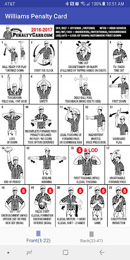 Williams Penalty Card app has come to your mobile device. Click on any of the signals to see a clear graphic of the penalty yardage, penalty reference, signals and an image of all signals involved in the penalty.