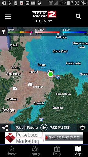 The WKTV StormTracker 2 Weather App includes: • Access to station content specifically for our mobile users • 250 meter radar, the highest resolution available • High resolution satellite cloud imagery • Future radar to see where severe weather is headed • Current weather updated multiple times per hour • Ability to add and save your favorite locations • Daily and Hourly forecasts updated hourly from our computer models • A fully integrated GPS for current location awareness • Opt-in push alerts to keep you safe in severe weather • Severe weather alerts from the National Weather Service