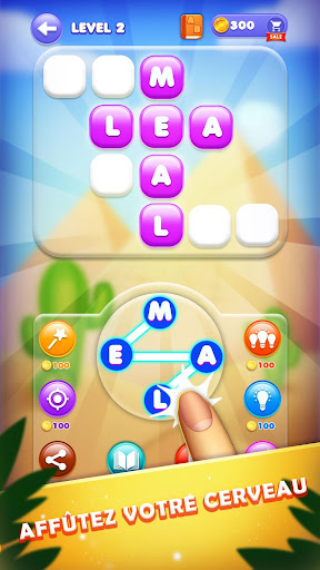 jeu Word Connect - Amusez-vous avec ce jeu addictif de recherche de mots La appli de connexion de mots pour jouer à des jeux de mots addictifs en trouvant les mots appropriés avec un ensemble de lettres donné. Vous voulez vous divertir avec les jeux de mots classiques ? Le plus excitant ! Trouver des mots dans des lettres données crée non seulement de l\excitation, mais met vos connaissances des mots à l\épreuve.Le plus difficile ! Profitez de votre jeu de mots préféré contenant des mots modernes pour devenir un maître dans le vrai jeu de puzzle. Word Finder - Le plus addictif avec un incroyable esprit défiant le cerveau. Il est amusant de deviner le mot exact dans les lettres données dans le jeu de mots, qui convient aux garçons, aux filles, aux enfants et autres. Ce jeu de mots simple peut améliorer votre vocabulaire et vos compétences en orthographe en vous engageant à connecter des lettres intelligentes pour former des mots significatifs. Comment jouer • Glissez les lettres intelligentes pour former des mots valides. • Vous pouvez faire glisser les lettres dans n\importe quelle direction (avant ou arrière) pour créer un mot. • Efforcez-vous de trouver de nombreux mots pour décrocher le meilleur score. • Déverrouillez des niveaux difficiles pour gagner des pièces supplémentaires.• Des règles simples avec des niveaux difficiles. Caractéristiques spéciales • Gratuit ! Jeux de mots classiques • Word Connect avec de nombreux niveaux • Word Connect - jeu cérébral amusant • Word Connect contient des niveaux faciles avec des règles simples • Word Finder - jeu de puzzle de mots amusant et passionnant • Word Finder connecte les mots pour former le vocabulaire • Word Finder est vraiment mérité pour tous les amateurs de jeux de mots pour exercer votre cerveau et développer des compétences en orthographe, vocabulaire et de la concentration. Téléchargez gratuitement ! Jouez à Word Finder dès à présent, et partagez votre expérience de jeu inoubliable avec d\autres membres.