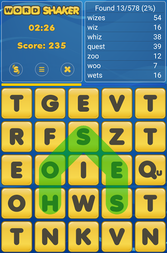 Word Shaker est un jeu de recherche de mots avec une torsion: les mots ne doivent pas être en ligne droite. Votre but est de gagner le plus de points en trouvant des mots dans une grille. Chaque lettre a une valeur de point particulière, et vous gagnez des bonus en formant des mots plus longs. Si vous appréciez les jeux de mots comme Scrabble et Boggle, vous adorerez Word Shaker. Si vous êtes coincé, secouez votre appareil pour brouiller les lettres! Les classements sont en ligne, afin que vous puissiez rivaliser avec vos amis et vos personnes du monde entier. ★ Taille de la grille de 4x4 à 8x8 ★ 1, 3, 5, 10, 15 et 30 minutes de jeux chronométrés ★ Détente des jeux intempestifs ★ Text-to-Speech option, parle les mots que vous trouvez ★ Passez en revue les mots que vous avez manqués et apprenez! ★ Shake pour mélanger vos lettres ★ Générateur de mots rapide et illimité, vous n\avez pas d\attendre ★ Mot de passe facile et lisse ★ Options pour activer / désactiver les sons, les vibrations et la voix ★ Classement en ligne quotidien, hebdomadaire, mensuel et de tous les temps ★ Meilleur classement des mots ★ Support pour téléphones et tablettes (portrait / paysage) Suggestions et autres commentaires bienvenus!