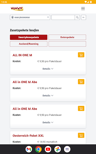 Die perfekte Ergänzung zu Ihrer WOWWW! SIM-Karte! Sie sehen auf einen Blick den Verbrauch Ihrer inkludierten Freieinheiten, den aktuellen Kostenstand und auch Rechnungen und Einzelverbindungsnachweise der letzten Monate. Sie finden darüber hinaus Informationen zu Ihrem Vertrag und können persönliche Einstellungen vornehmen. Durch die Aktivierung von Zusatzpaketen oder dem Upgrade Ihrer Einheiten, können Sie jederzeit Ihren Tarif optimieren. Die Funktionen im Detail: • Übersicht über die angefallenen Kosten im aktuellen Verrechnungszeitraum • Übersicht über die verbleibenden Freieinheiten (Datenvolumen, Minuten, SMS) im aktuellen Verrechnungszeitraum • Anzeige der letzten Rechnungen und Einzelverbindungsnachweise • Wertkartenguthaben abfragen und aufladen • Tarif wechseln • Zusatzpakete aktivieren • Einfache Rufnummernmitnahme • SIM tauschen • Mittels Gruppenfunktion mehrere SIM Karten verwalten • Roamingeinstellungen verwalten • Mehrwertdienstsperren verwalten • Rufumleitungen setzen • Kontaktformular • …und vieles mehr Die App ist für Smartphones und für Tablets geeignet. Der Kontomanager ist auch über den Browser https://www.kontomanager.at/wowww erreichbar.