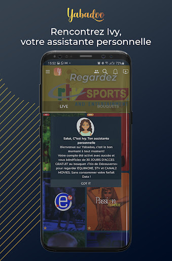 Avec Yabadoo, les utilisateurs peuvent diffuser leurs programmes TV en direct préférés via leur smartphone, ordinateur portable ou smartTV sans utiliser leurs données Internet. Outre la télévision en direct, ils peuvent également écouter la radio et discuter avec d\autres personnes qui regardent à tout moment et partout ! Disponible exclusivement pour : _ Cameroun : MTN / Orange _ Mozambique : TMCEL / Vodacom --- COMMENT ÇA FONCTIONNE? --- Une fois l\application installée, enregistrez-vous avec votre numéro de téléphone et commencez à explorer le catalogue Yabadoo de forfaits TV ! L\application est très intuitive et vous vous sentirez comme chez vous en la parcourant. Pour vous abonner au contenu, cliquez dessus et confirmez votre choix. L\opérateur débitera votre crédit mobile du montant de l\abonnement, et vous aurez automatiquement accès à votre contenu. Profitez-en et n\hésitez pas à partager vos avis afin que nous puissions continuer à améliorer le service !