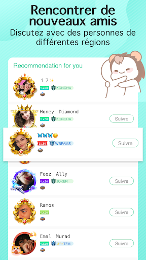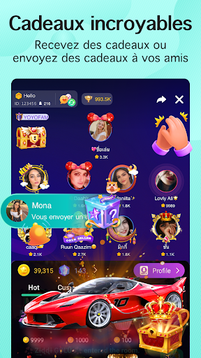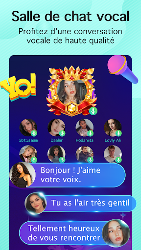 Dans YoYo, vous pouvez profiter d\un chat vocal et de jeux intéressants sans fin avec des personnes de différentes régions. Vous pouvez créer votre propre chambre, partager votre musique préférée, chanter ensemble et jouer à des jeux avec vos amis ou des inconnus. Commençons la partie de chat vocal et faisons-nous de nouveaux amis dans la salle de chat vocal YoYo ! Caractéristiques principales: 【Salle de discussion vocale】 Profitez d\un chat vocal en direct de haute qualité avec des personnes sympathiques de différentes régions. Créez votre propre pièce sans aucune limite de niveau. Discutez avec des inconnus pour étendre votre réseau social communautaire. 【Jeux occasionnels populaires】 Divers jeux en ligne populaires sur une seule application ! Ludo, Domino, UNO, 8 Ball Pool, etc. Les jeux peuvent vous rendre plus heureux lorsque vous discutez en ligne. Trouvez des amis en jouant à des jeux ! 【Cadeaux incroyables et effets d\entrée magiques】 Envoyez des cadeaux à vos nouveaux amis les plus proches pour exprimer votre émotion lorsque vous discutez. Effets d\entrée sympas ! Tout le monde fait attention à vous. Soyez une super rock star maintenant. 【Faire équipe】 Vous pouvez rapidement faire équipe pour jouer à Mobile Legends, PUBGM, Free Fire et à d\autres jeux populaires. 【Moment】 Partagez les moments forts de votre vie par des photos ou de courtes vidéos. Créez vos merveilleux souvenirs dans YoYo! 【Famille】 Créez une \Famille\ et invitez vos amis et votre famille à vous rejoindre. Vous pouvez obtenir des objets spéciaux et des récompenses ici. D\autres activités amusantes vous attendent. YoYo est la meilleure application de divertissement pour vos besoins ! Profitons de YoYo ensemble !