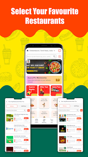 ZAAROZ provides an online ordering & delivery service in Tamilnadu, India. Zaaroz App directs the diners to order food from an endless number of restaurant options with different delicious food varieties, It has partnered with popular vendors(Food, Groceries, Fruits, Vegetables, Meat, Medicines etc), you can order all your Home needs from the comfort of your home. Zaaroz is a hub for foodies and its impeccable service at your needy time.. -Special Occasion -Hungry Time -Everyday meal for working people -Breakfast -Brunch -Elevenses (Tea or coffee, juice at 11 am) -Lunch -Supper -Dinner Start ordering with zaaroz… -Download app -Available in both Google Play (for Android) and App Store (for iOS). -Sign up -Pick which Restaurants? What food? Where? (Delivery Location) -Pay through variety of payment options - get your order delivered at your doorsteps ZAAROZ customer app comes up with a lot of user friendly features listed below to ensure a great customer experience. - Easily search for your favourite items by choosing the vendor of your choice from the available options. - Browse through the menu with complete images and description of each menu item. - favourites are categorized to refine your search - Avail great promotions and discounts for your current or future order through the Offers section of the app. - Customize your order: add notes to your order or place special requests. - Place an order for an immediate delivery or schedule it for a later time. - Save multiple addresses for a faster checkout. - Track orders status and delivery real-time. - Easy review and rating options to share your order or delivery experience. Our goal at ZAAROZ is to make it easier for customers to order anything at their own comfort and connect people with their favorites. Featuring over thousands of restaurants in all cities, towns and Local areas.