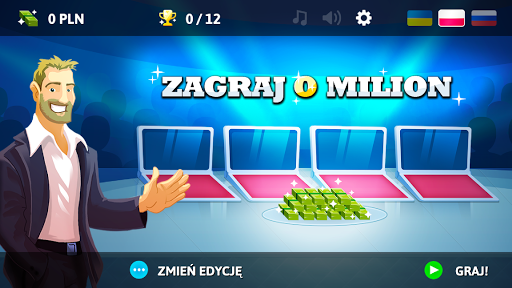 Znudziły Cię zwykłe quizy? Chcesz poczuć prawdziwe emocje podczas gry? To świetnie trafiłeś! Zagraj o milion to nie jest kolejny zwykły quiz, a świetna zabawa w obstawianie potencjalnie poprawnych pytań. Aby zgarnąć kasę musisz odpowiedzieć na 8 pytań! Zaczynasz mając milion złotych w gotówce, a gry nie możesz przerwać w żadnym momencie. Na każde pytanie odpowiadasz stawiając pieniądze na odpowiedź którą uważasz za poprawną. Jeśli nie jesteś pewny odpowiedzi możesz postawić kasę na więcej niż jedno pytanie odpowiednio ją rozdzielając. Pieniądze postawione na poprawną odpowiedź zostają na stole a reszta przepada. Pieniądze które zostaną na stole po ostatnim pytaniu są twoją wygraną. Gotowy na wyzwanie? Przed każdym pytaniem możesz wybrać jedną z dwóch losowych kategorii, a jest ich w puli tysiące - począwszy od tych naukowych po wiedzę zbędną. Wybrane kategorie w grze: Geografia, Plotki, Historia Powszechna, Celebryci, Filmy, Seriale Polskie i Zagraniczne, Astronomia, Fizyka, Trudne Słówka, Slang Młodzieżowy, II Wojna Światowa, Motoryzacja, Sport, Skoki Narciarskie, Olimpiada i wiele więcej! Gotów by walczyć o milion i zostać milionerem?