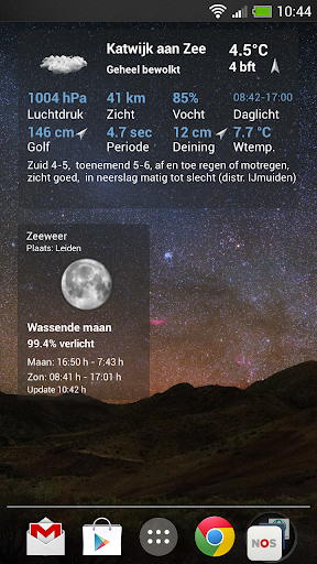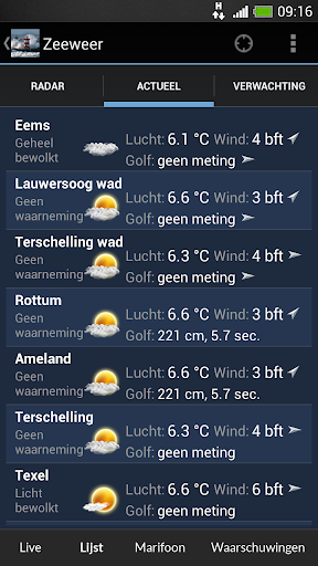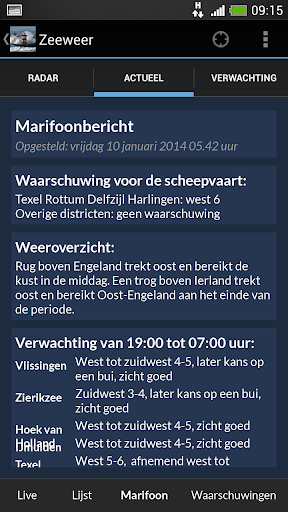Toont u het actuele weer en golfgegevens, direct uit de meetnetten van KNMI en Rijkswaterstaat. Op de Noordzee, langs de hele Nederlandse kust, de Wadden en de Zeeuwse Delta. Zeeweer is gratis en biedt u: √ Live weermetingen van uw locatie, rechtstreeks uit het KNMI-meetstationnetwerk en uit het Landelijk Meetnet Water van Rijkswaterstaat. √ Het actuele Marifoonbericht. √ De waarschuwingskaarten voor zowel kustwateren als Noordzee. √ Gedetailleerde GFS-analysekaarten met Wind- Golven- Zicht- en Regenverwachting voor de komende negen dagen. √ Synoptische analyse KNMI, zowel op korte als lange termijn. √ Bracknell- Hirlam- ECMWF- en GME (Deutscher Wetterdienst)-kaartenreeksen om uw eigen analyse te kunnen maken. √ De pluimen en algemene 5-daagseverwachting voor Nederland. √ De KNMI-neerslagradar. Leveringsvoorwaarden: We doen ons uiterste best om een fantastische en accurate weerapp te leveren, maar kunnen natuurlijk niet garanderen dat de software en de daarin gepresenteerde data altijd 100% correct werken en zijn. Daarbij kunnen databronnen soms wisselen en kunt u geen rechten ontlenen aan deze weerapp of de daarin gepresenteerde informatie. Door Zeeweer te downloaden en gebruiken accepteert u deze leveringsvoorwaarden. Locatiegebruik De locatiepermissie is alleen nodig voor de app en widgets om u de actuele weergegevens in uw omgeving te tonen. Deze locatiegegevens worden volstrekt anoniem verwerkt en door Surfcheck op geen enkele andere manier gebruikt.
