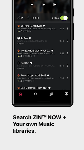 Avec ZIN Play, vous pouvez accéder à votre musique depuis ZIN Now et à votre bibliothèque musicale directement depuis votre téléphone, obtenir des suggestions de chansons basées sur vos playlists, et rechercher des morceaux par mots clés, rythme et BPM. Vous pouvez personnaliser vos morceaux favoris en ajoutant des effets de son et en modifiant la longueur – vous pouvez même ajouter une pause! Même si vous n\êtes pas encore passé au numérique, vous aurez des contenus tels que les chorés Mega Mix, et en plus les vidéos de spécialité et bonus. Votre contenu favori de ZIN Now se synchronise automatiquement et parfaitement avec ZIN Play. Et le meilleur ? Vous aurez accès à vos playlists dans vos cours sans avoir besoin de Wifi ou de données mobiles.