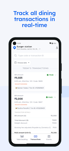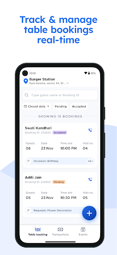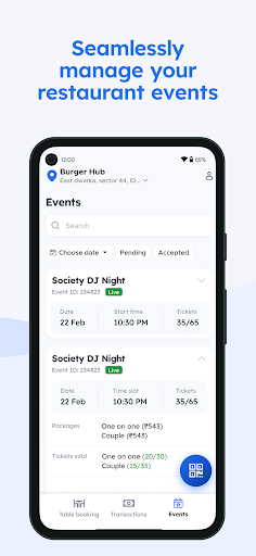 Welcome to Zomato Dining Partner app, crafted for our restaurant partners. Our restaurant friendly interface enables you to: Conveniently view and manage all your Zomato Dining reservation requests. Track Zomato Dining transactions in real-time, with information about payment statuses and transaction details. Efficiently manage all aspects of your restaurant events listed on Zomato, from tracking ticket sales to managing guest check-ins. Additional features include: View all your upcoming reservations and their statuses (confirmed/canceled/rejected) Convenience of adding direct reservation requests from phone calls or walk-in customers. Option to disable auto acceptance and switch to manual confirmations for particular time slots. Instant notification alerts for successful bookings and transactions, keeping you informed on the go. Download the Zomato Dining Partner App now!